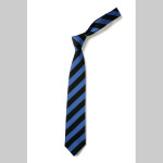 Double striped tie in Royal and White. All of our stock ties are made in UK based factories and are made from 100% Polyester.